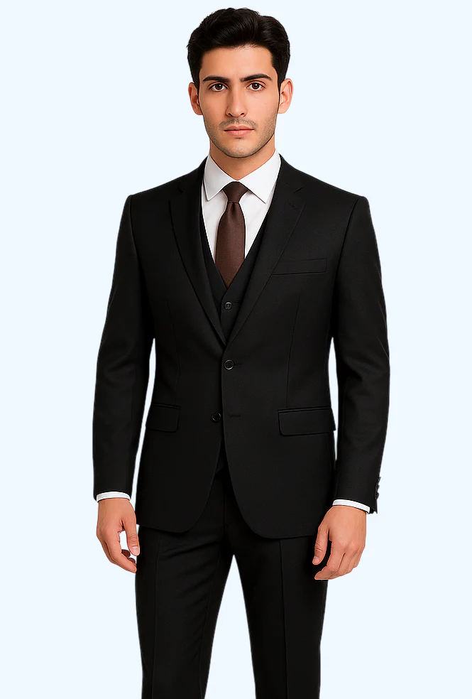 Slim Fit Tailoring: Offers a modern silhouette that hugs the shoulders and tapers through the waist and legs, creating a sleek and fitted profile.