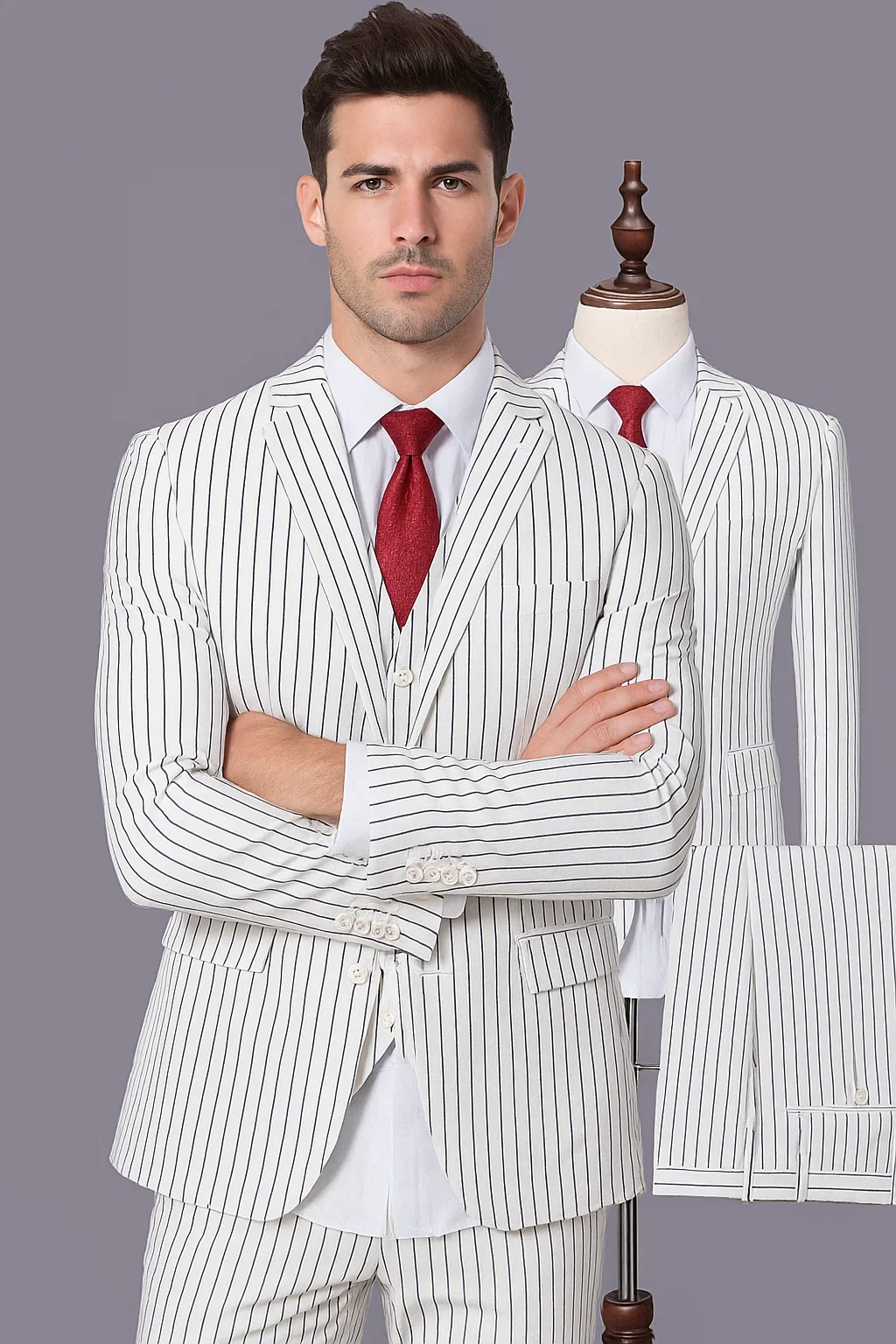 White Suit with Black Pinstripe – 1920s & 1940s Inspired Dress Suit