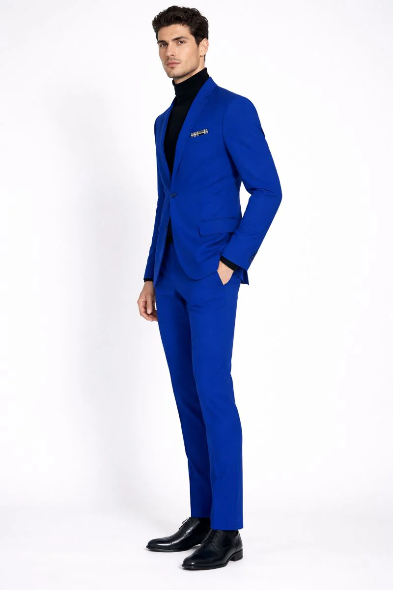 Absolutely outstanding suit! The royal blue color is rich and vibrant without being overpowering. Paired with the turtleneck, it creates such a sleek and modern look. I’ve worn it to a wedding and a business dinner — received compliments all night. The fit and tailoring feel premium. - Matteo C